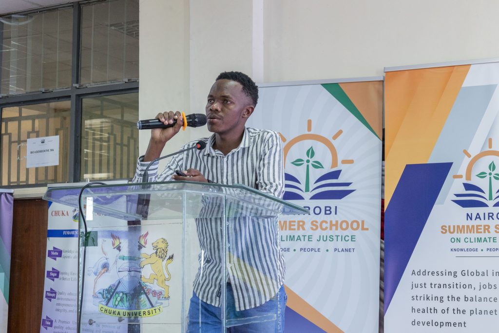 During the process, alumni of past cohorts took the stage to share the impact of the Nairobi Summer School on Climate Justice and the difference they are making in their communities by leading climate action. Ms. Shampi Anna and Mr. Tanui Dominic, both alumni of Cohort III, provided particularly inspiring insights.