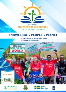 The Nairobi Summer School on Climate Justice, an initiative of the Pan Africa Climate Justice Alliance (PACJA) is conducted annually. Its overall purpose is to promote creative voices, especially from young people and climate justice activists and inspire social and scientific innovations that tackle the vexed questions of environmental and climate justice, including intra and intergenerational equity. It brings together long-standing climate justice actors, younger generations of campaigners and activists, climatejustice advocates and practitioners both individual and organizational representatives from across the world to share experiences and perspectives to especially reflect on just pathways to a low-carbon, climate-resilient, socially-just development trajectory.